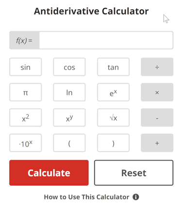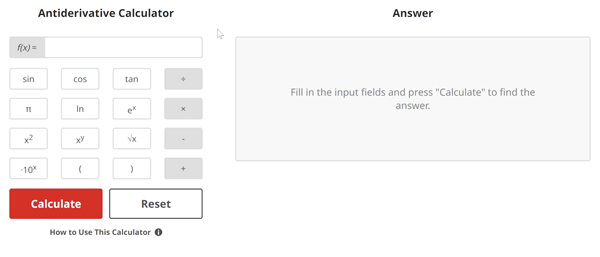 The above calculator finds the antiderivative of the function you provided with respect to the variable chosen. An antiderivative is used in the process of calculating an integral. It is exactly as its name implies: the opposite of a derivative.
